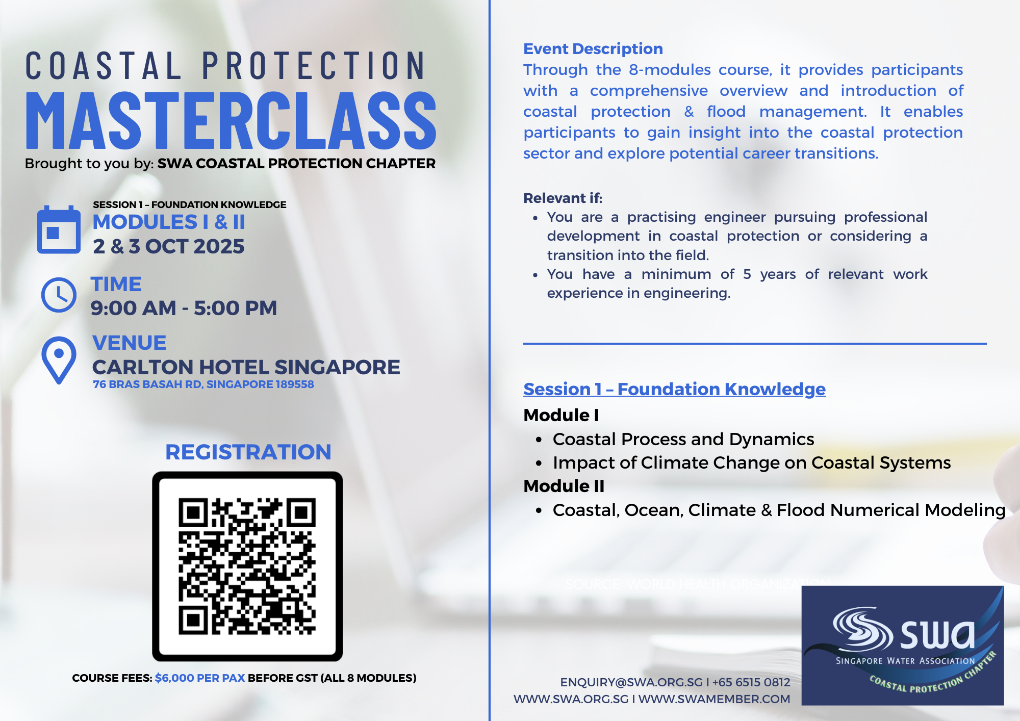 This 8-Modules Masterclass is designed to equip participants with a comprehensive overview and introduction of coastal protection & flood management, enable them to gain insight into the coastal protection sector and explore potential career transitions.